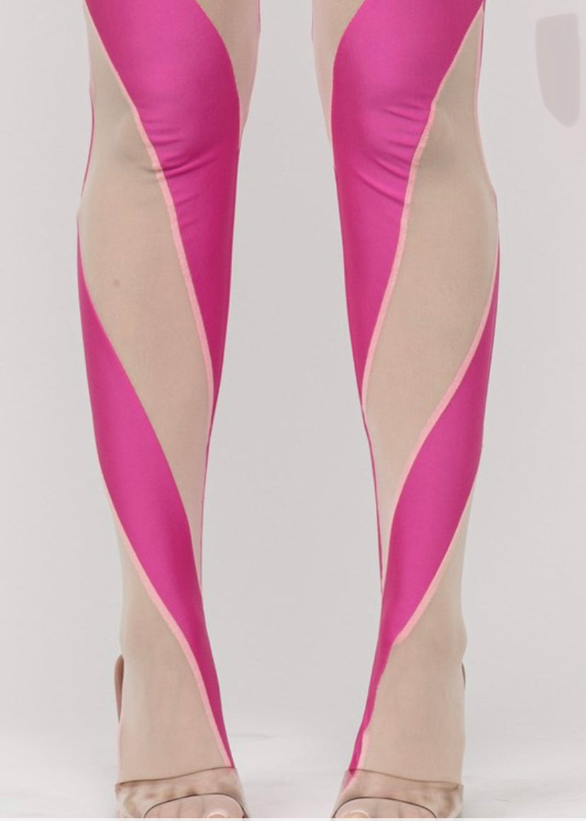 When you are ready to give body grab our footed Sexy Stripes Jumpsuit which features contrast mesh see through color block detail on the legs, with a front zipper that snatches you in the right places.